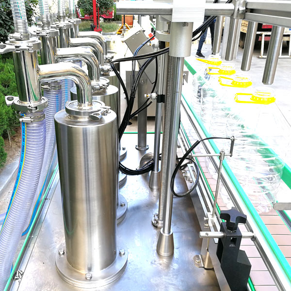 1、桶裝米酒生產線采用自行研發設計的新型灌裝頭,有效防滴漏同時實現可調傘面消泡灌裝。定位控制系統可有效防止光電誤計數,單氣缸穩定下潛、瓶口有效定位。